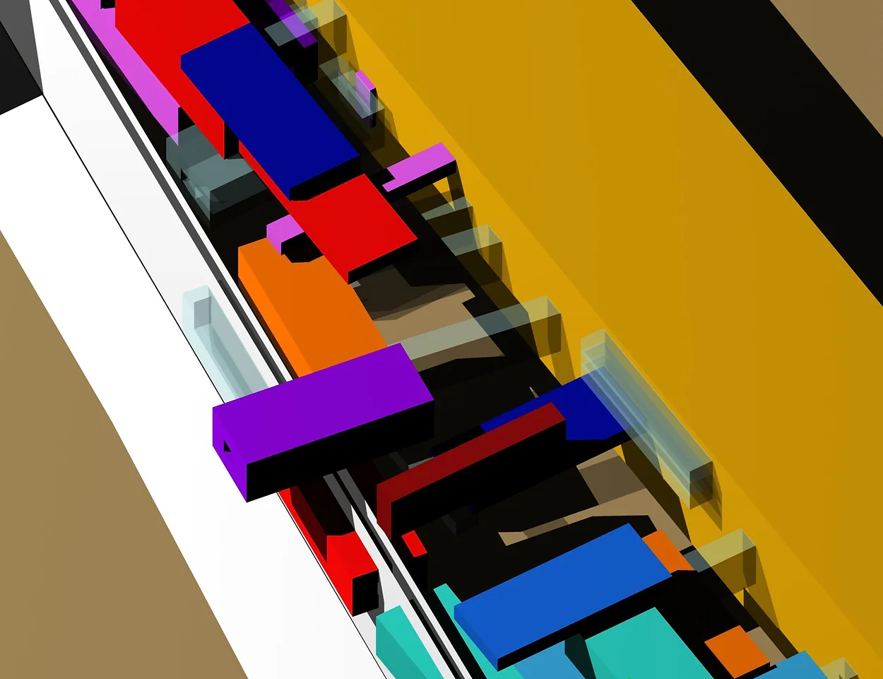 Die Philosophie des folgenden Entwurfes: An einen geschlossenen Bestand werden offene Fraktale angedockt; manche durchstoßen den Bestand, als Gegensatz und zur Entmachtung des dominanten geschlossenen Systems.